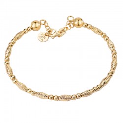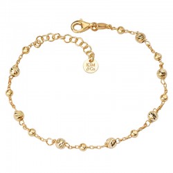 Italian chain bracelet with 3 stations comprised of diamond cut barrel and ball beads. 7 inches with 1 inch extension. Lobster clasp. Sterling silver with 1 micron of 14kt gold plating.