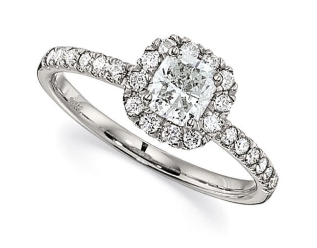 Carefully crafted in white gold this Round Halo's 5 Stations Ring with 1.00 Ctw.