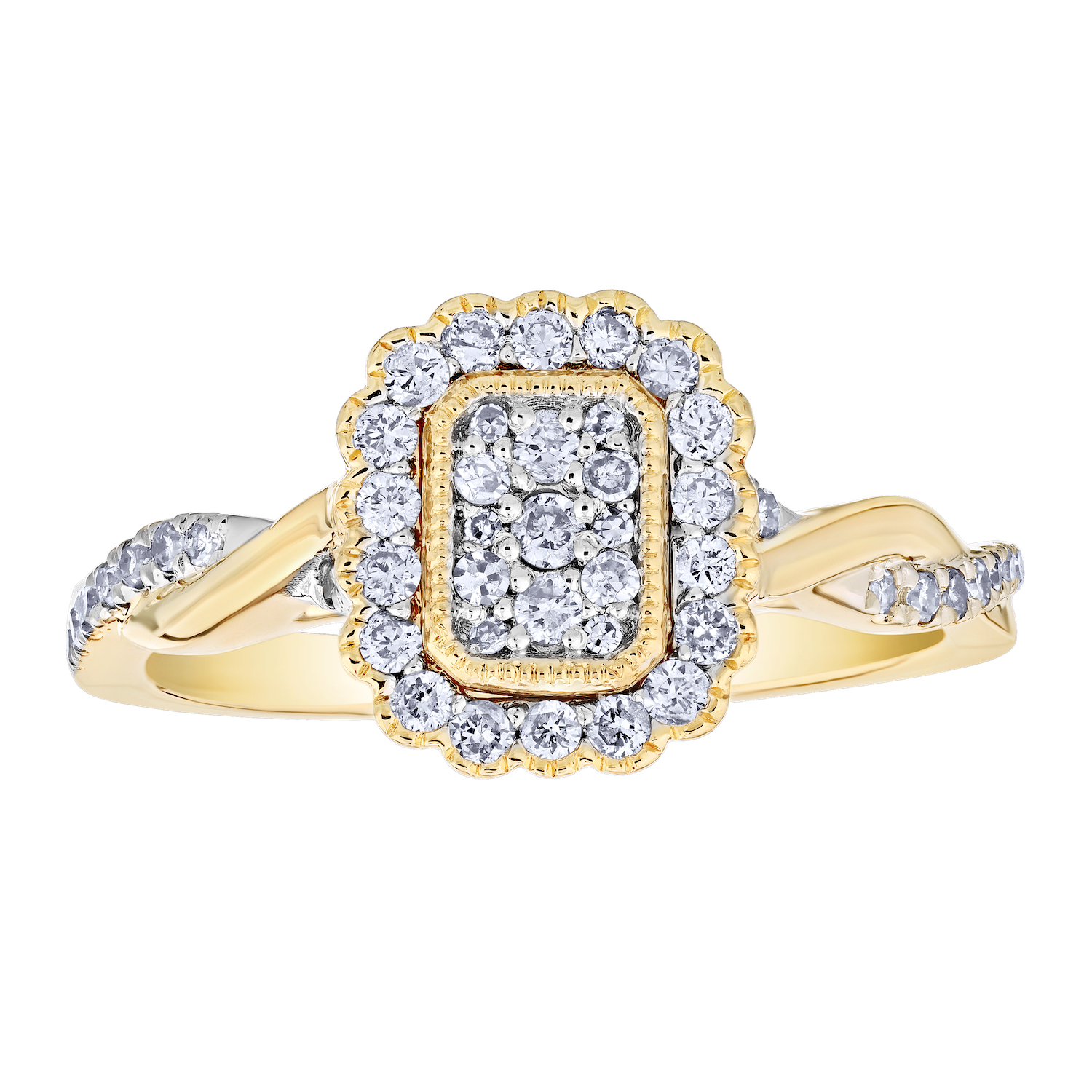 Shefian™ 14K Yellow Gold Ring Asscher Shape COMPOZIT Ribbed Shoulders Diamond 0.75 Ctw