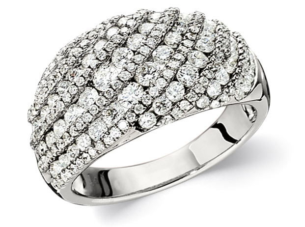 Carefully crafted in white gold this 2 Interwoven Pave Set Ring with 0.20 Ctw.