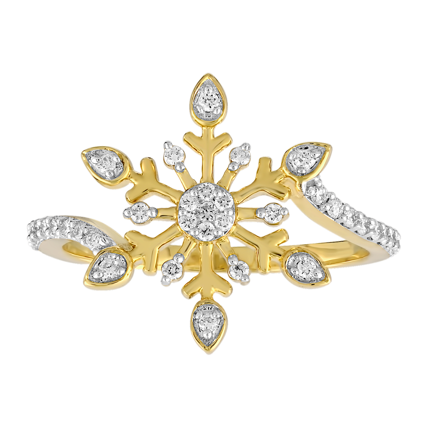Smaller diamonds are artistically set together to create a magnificent design that looks like one single stone. This 14k Yellow Gold Ring will be a stunning addition to any jewelry collection.