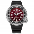 This new timepiece comes as part of the dive-ready Promaster Sea collection, marking a unique take on the professional-grade style and performance. The robust 46mm silver-tone stainless steel exterior ensures up to 300 meters of water resistance, making use of a 4 o'clock screw-down crown placement and an easy-grip bezel executed in black for an incredibly bold aesthetic. Hidden lugs connect to a strap made from BENEBiOL™ PU, which includes plant-based materials, securing the timepiece to the wrist. The highly legible dial is brought to life through a deep, gradient red, with a pair of prominent hands sweeping overhead and a subtle date at the 4 o'clock position adds daily utility. Sustainably powered by light - any light - using our proprietary light-powered movement that keeps it running for 365 days on a single full charge. Caliber E365.